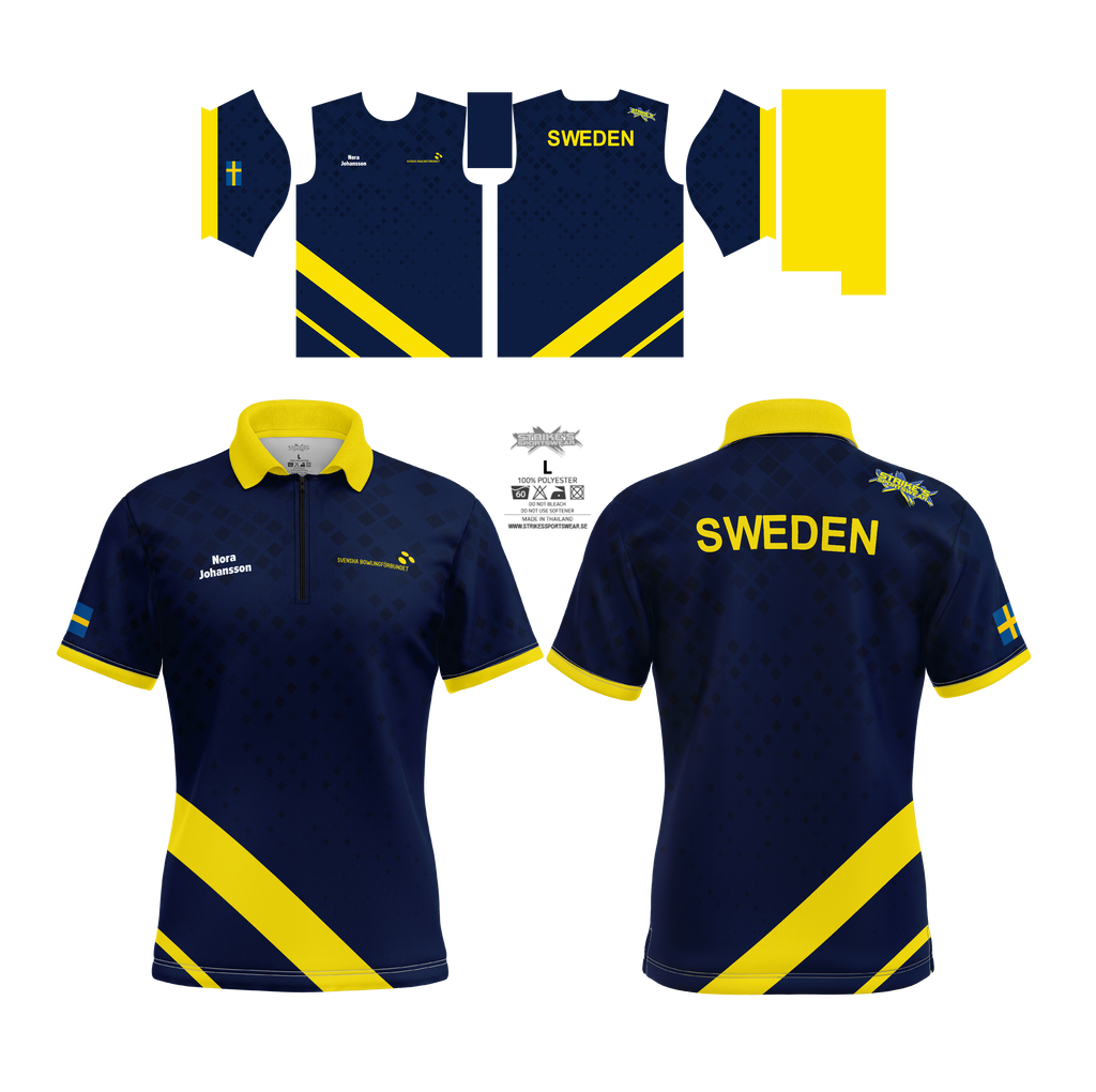 Plaggen är digitaltryckta (sublimerade) över hela plagget med hög kvalitet. Du kan välja bakgrundsfärg, mönster eller bild och naturligtvis lägga till din logotyp och text, det är bara din fantasi som sätter gränsen för vad som kan tryckas. Om det är sportkläder är det möjligt att ge dem namn och nummer för ett tillägg. Materialet vi använder är 100% polyester som andas bort fukt från kroppen och torkar snabbt. Alla tyger certifierade enligt OEKO-TEX.
